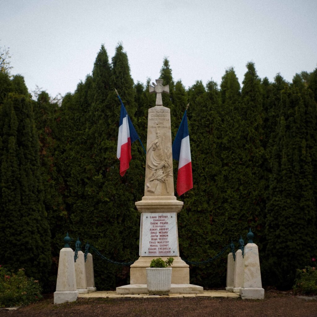 - aux héros de chameroy morts pour la patrie 1914-1918, obélisque sur socle, surmonté d'un croix latine, un fusil, un drapeau et une palme sculptés sur l'obélisque, entouré de six plots reliés par des chaines, commune de rochetaillée, haute-marne