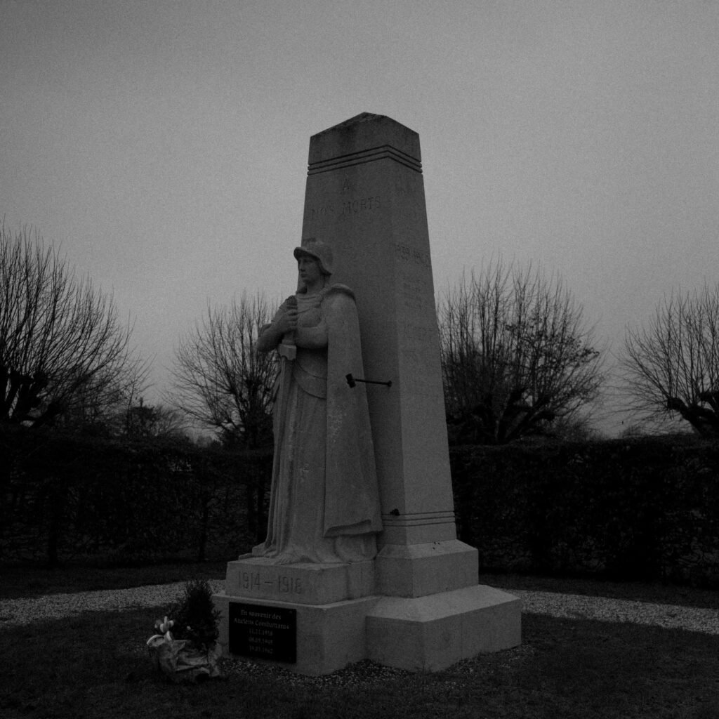 - à nos morts, obélisque derrière la france, portant une cape et un casque, tenant une épée, je n'ai pas noté le nom du village, mais c'était en charente