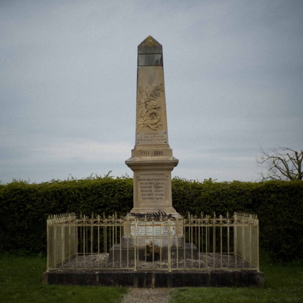 - lichères à ses enfants morts pour la france, sculptés sur l'obélisque, casque, épée, palme et couronne mortuiare, lichères, yonne