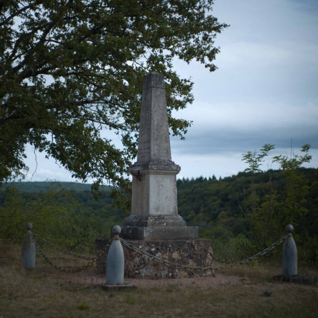 - à la mémoire des enfants de saint julien de bourdeilles, obélisque, fleur de coquelicot scupltée, au sol six obus reliés par une chaînes, dordogne
