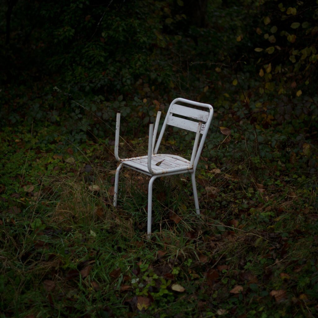 milieu de l’automne, les feuilles commencent à tomber, je rentre la chaise de jardin qui était installée dans le potager du haut
