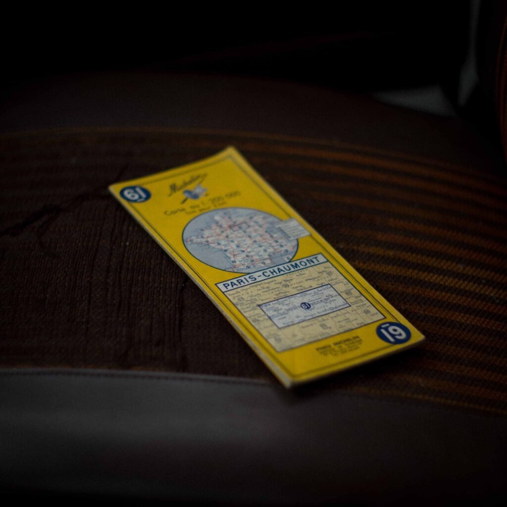 je parcours les routes jaunes et les routes blanches sur des cartes michelin au 1 : 200 000, la france continentale est découpée en 36 cartes, chaque carte est découpée en 20 plis, les cartes sont numérotées de 51 à 86, puis 87 pour l’alsace, 90 pour la corse, 91 pour les environs de lyon, 92 pour jura-savoie, 93 pour la vallée du rhône, 97 pour les « 150km autour de paris », ma maison se trouve sur la carte 65, le morvan à cheval sur les cartes 65 et 69, cartes 68, 72, 75 et 71 pour aller chez mes parents, cartes 73, 76 et 80 pour aller dans le massif central, 62 pour aller dans les vosges, 61 pour la champagne, 66 et 70 pour la franche-comté, je photographie celles dont je me sers, posée sur le siège passager de ma vieille 4l, un siège en tissu, bandes orange et marron, j’ai au moins un exemplaire de chacune des autres cartes, elles me serviront peut-être toutes un jour, même la 90, j’ai promis de m’en servir, mais il me faudra du temps