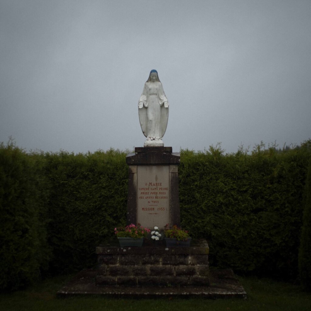 o marie, conçue sans pêché, priez pour nous qui avons recours à vous, mission 1955, avec sa longue cape blanche et ses paumes de mains tournées vers l’avant cette vierge marie me fait penser à un personnage de marvel