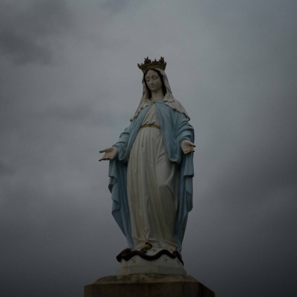 • vierge reconnaissable à ses quatre doigts cassés à la main gauche, photographiée sous deux angles différents